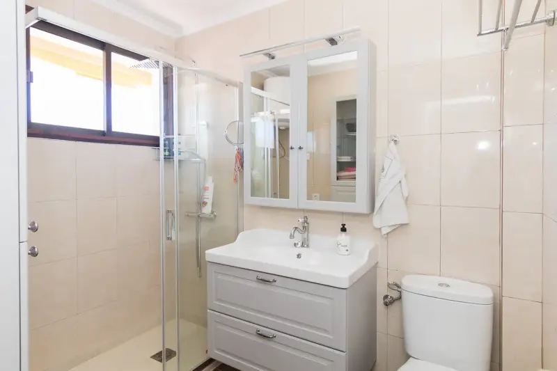 The apartment with roof terrace and air conditioning has 2 bedrooms, new bathroom, kitchen with a new stove, oven and microwave.